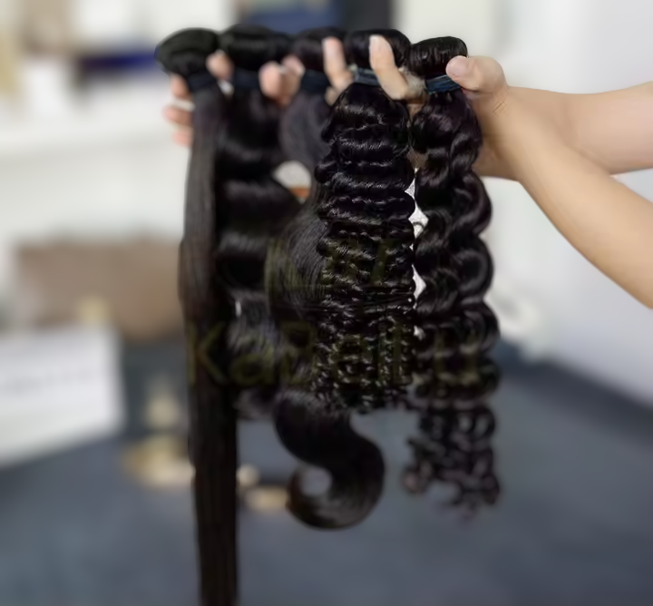 Raw Bundles that have been enhanced with a gentle chemical treatment to lock in beautiful, long-lasting curls or waves. Our process preserves the natural strength and softness of raw hair, giving you a versatile, tangle-free look that can be washed, styled, and heat-treated while maintaining its texture last 1-3 years with care.